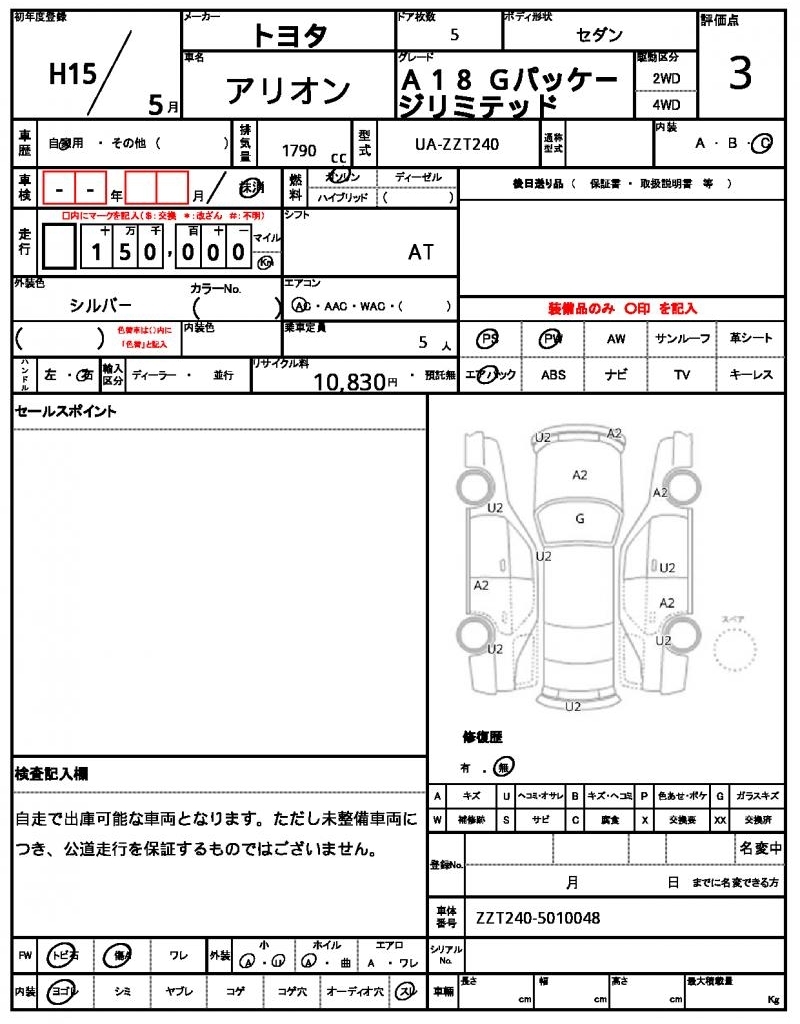 TOYOTA ALLION - лот 47026