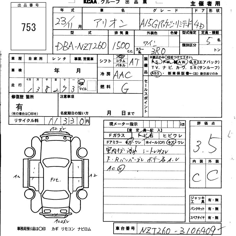 TOYOTA ALLION A15 G PACKAGE LIMITED - лот 753