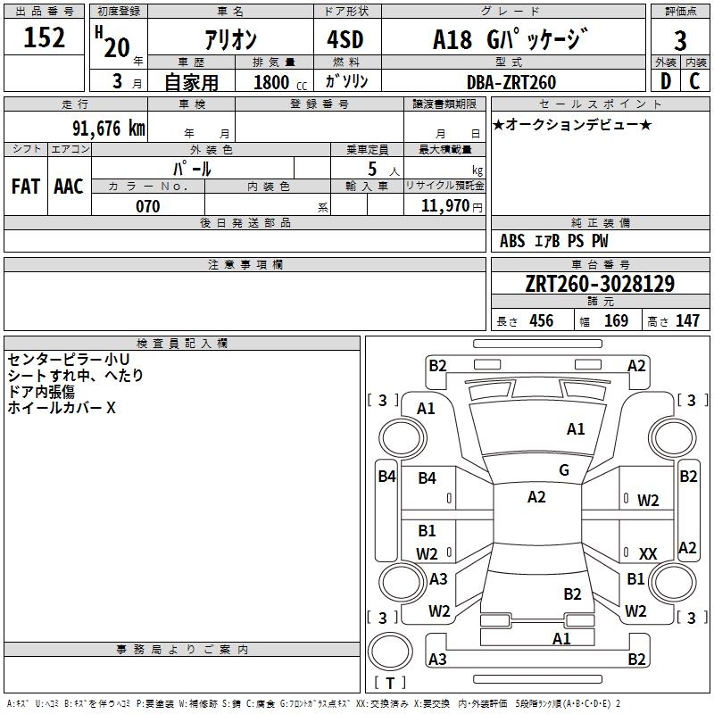 TOYOTA ALLION A18 G PACKAGE - лот 152