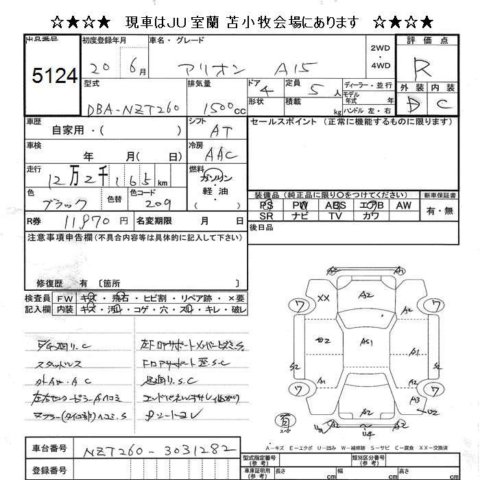 TOYOTA ALLION A15 - лот 5124