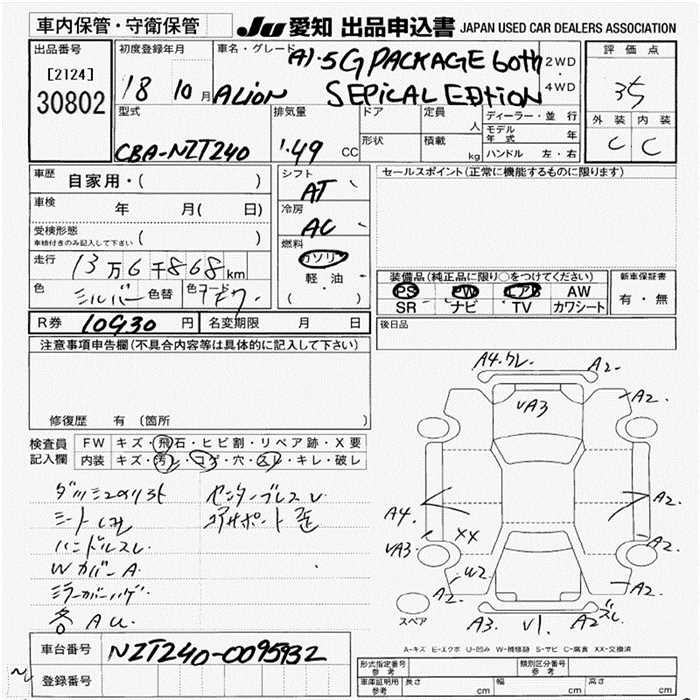 TOYOTA ALLION A15 G-PKG 60thSP-ED - лот 30802