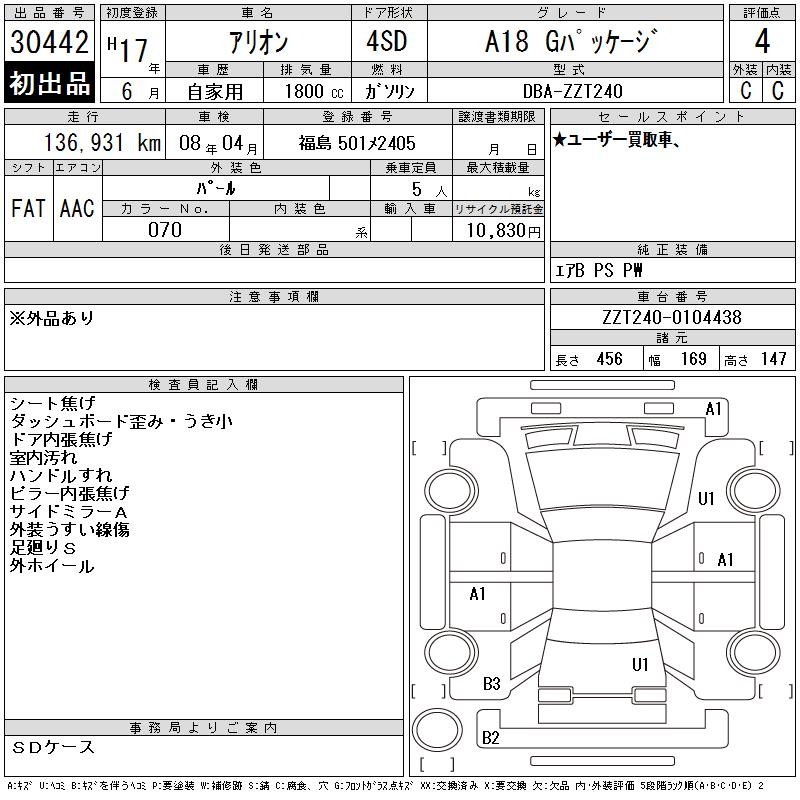 TOYOTA ALLION A18 G PACKAGE - лот 30442