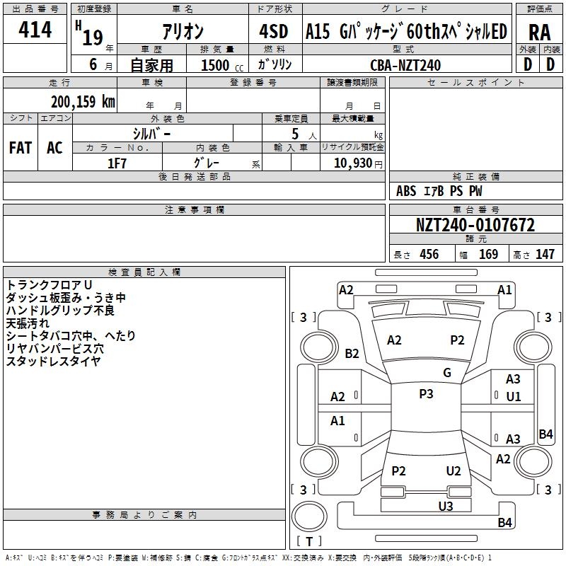 TOYOTA ALLION A15 G PACK 60TH SPECIAL ED - лот 414