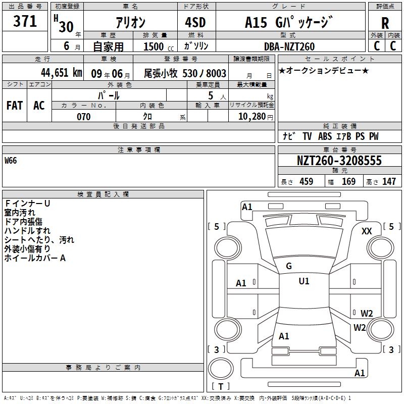 TOYOTA ALLION A15 G PACKAGE - лот 371