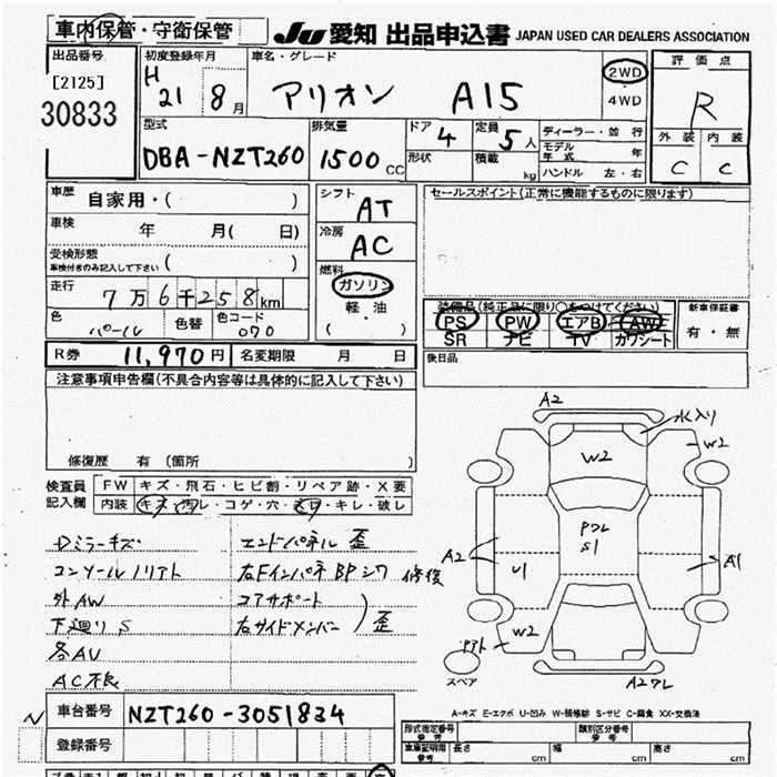 TOYOTA ALLION A15 - лот 30833