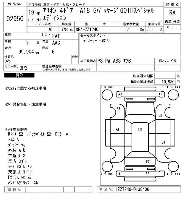 TOYOTA ALLION A18 G PACKAGE 60TH SPECIAL EDITION - лот 2950