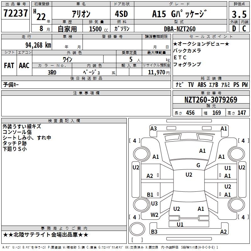 TOYOTA ALLION A15 G PACKAGE - лот 72237