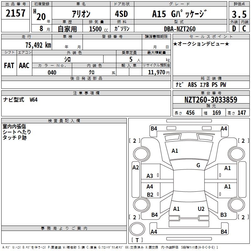 TOYOTA ALLION A15 G PACKAGE - лот 2157