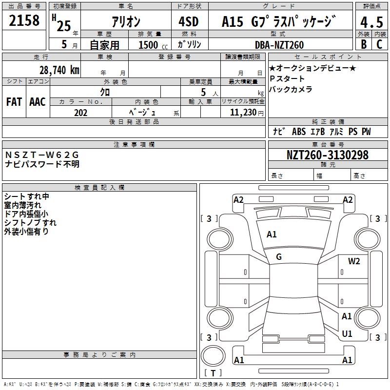 TOYOTA ALLION A15 G PLUS PACKAGE - лот 2158