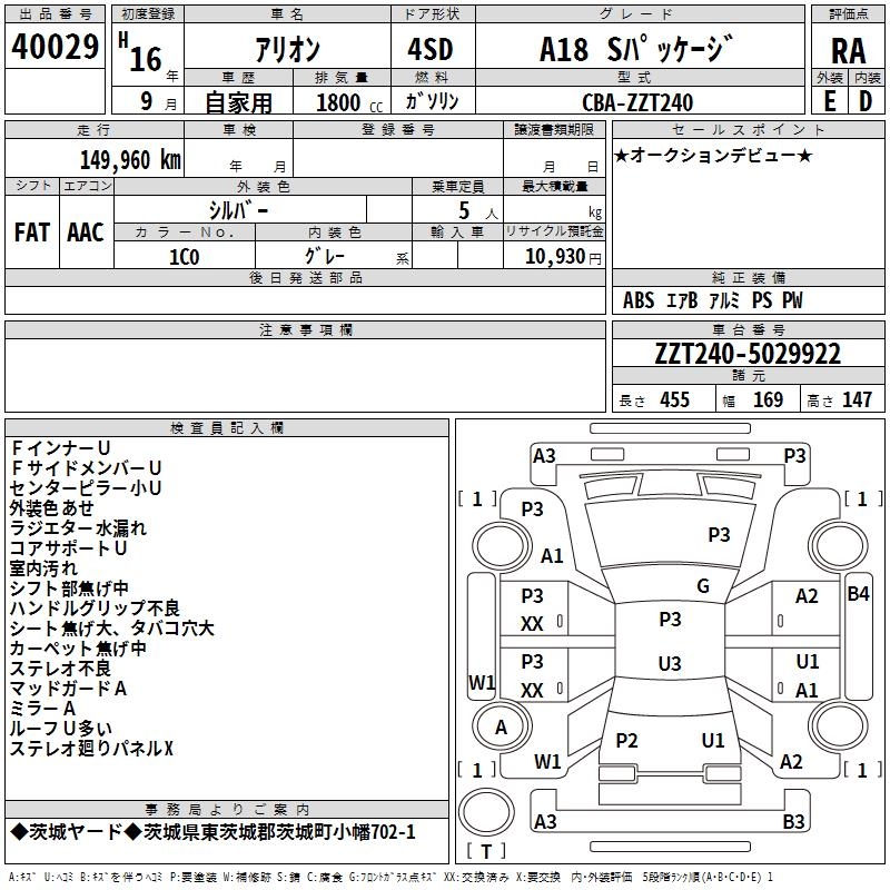 TOYOTA ALLION A18 S PACKAGE - лот 40029