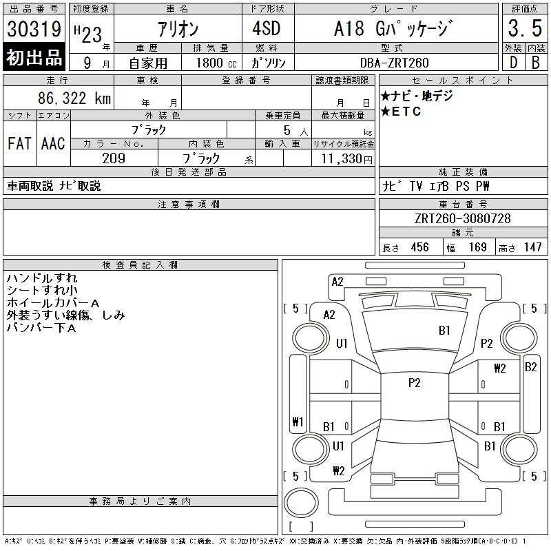 TOYOTA ALLION A18 G PACKAGE - лот 30319