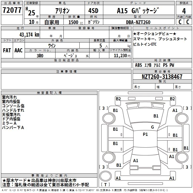 TOYOTA ALLION A15 G PACKAGE - лот 72077
