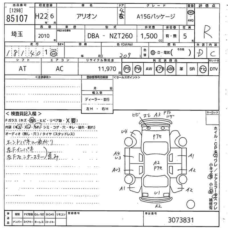 TOYOTA ALLION A15G PACKAGE - лот 85107