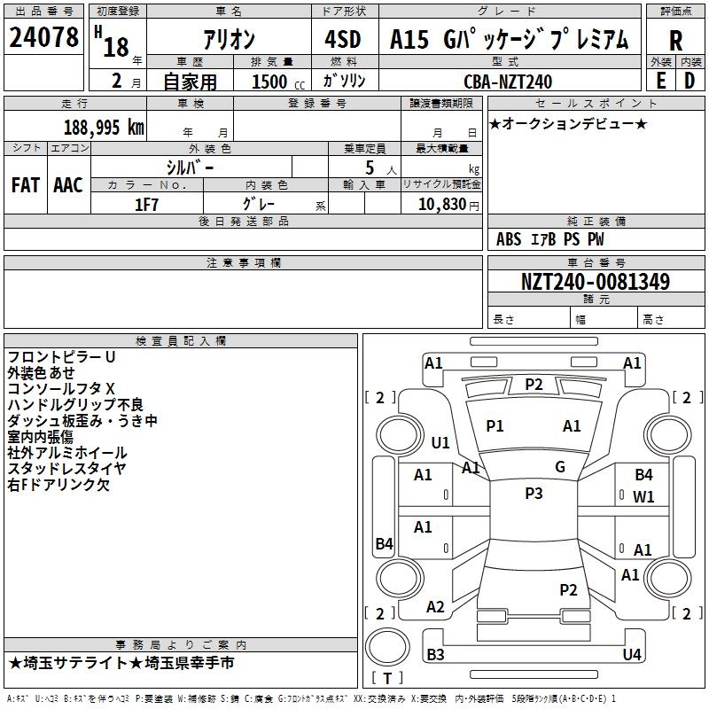 TOYOTA ALLION A15 G PACKAGE PREMIUM - лот 24078