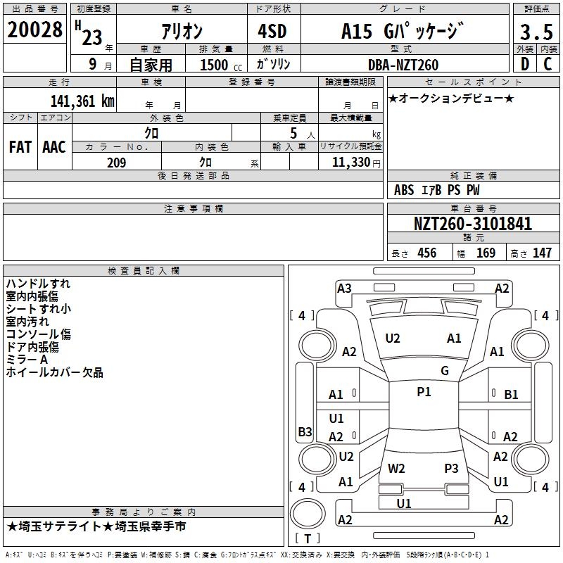 TOYOTA ALLION A15 G PACKAGE - лот 20028