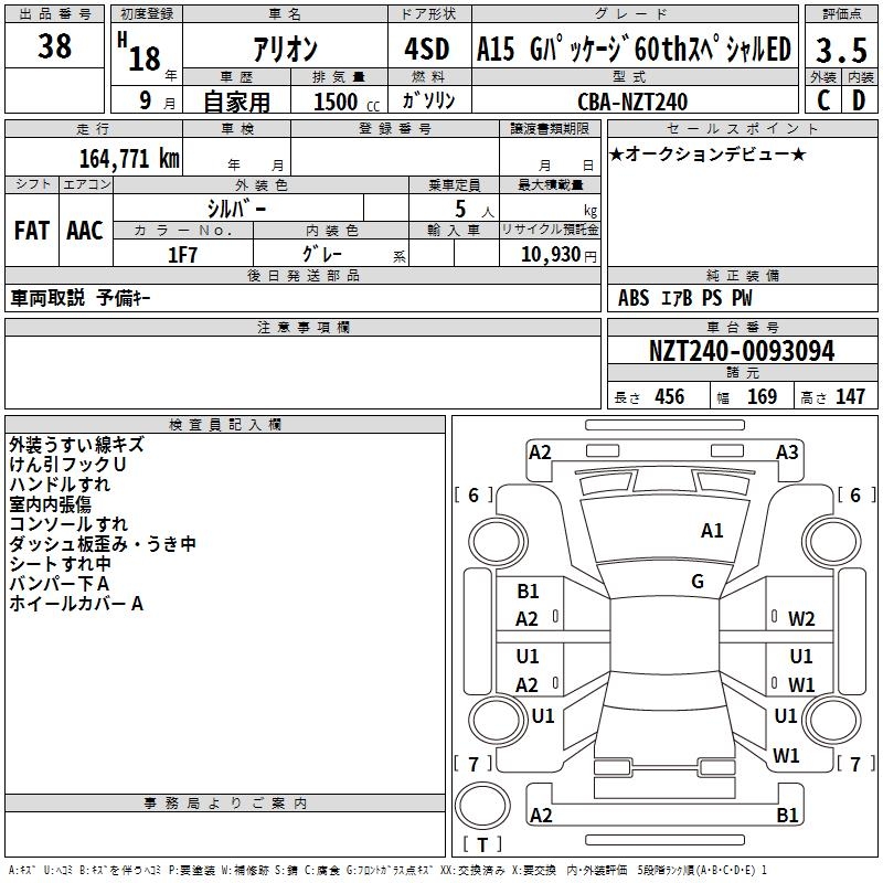 TOYOTA ALLION A15 G PACK 60TH SPECIAL ED - лот 38