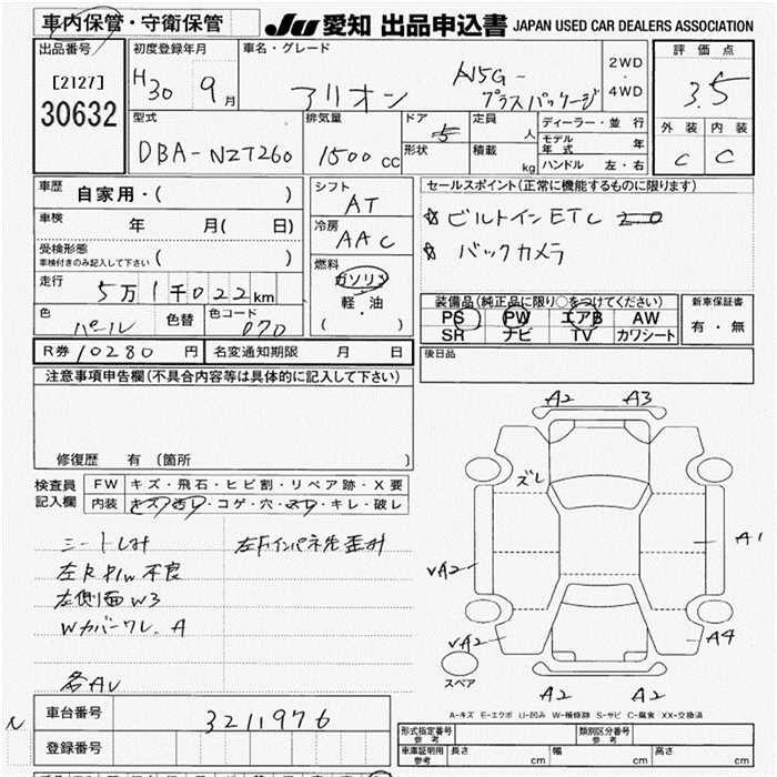 TOYOTA ALLION A15 G PLUS PACKAGE - лот 30632