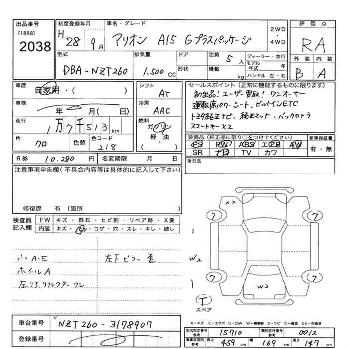 TOYOTA ALLION A15G PLUS PACKAGE - лот 2038