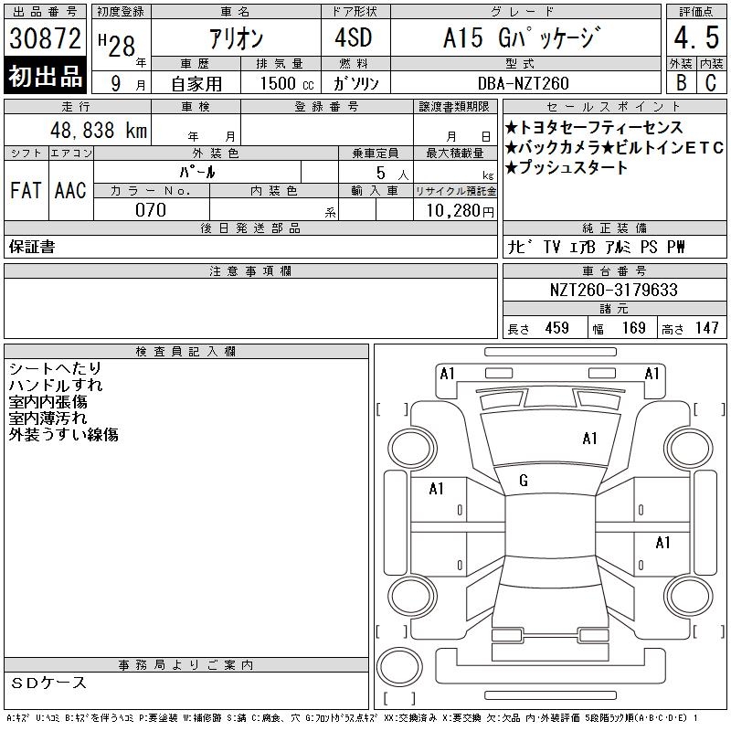 TOYOTA ALLION A15 G PACKAGE - лот 30872