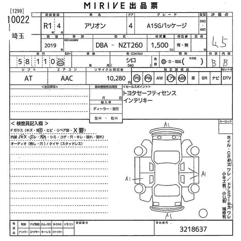 TOYOTA ALLION A15G PACKAGE - лот 10022