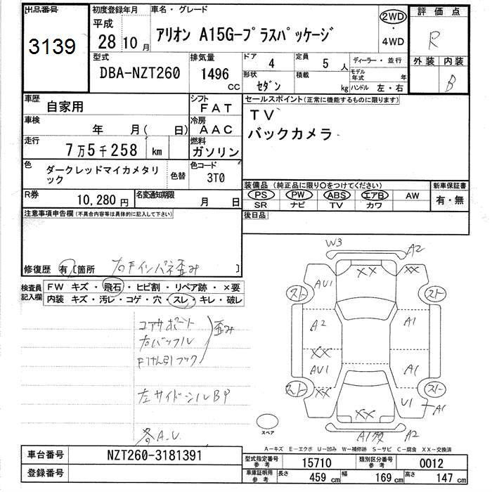 TOYOTA ALLION A15G PLUS PACKAGE - лот 3139