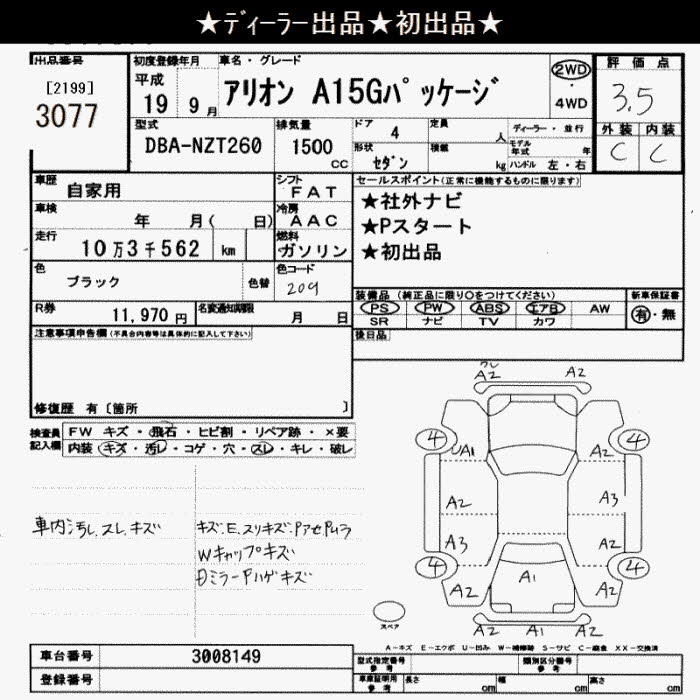 TOYOTA ALLION A15G PACKAGE - лот 3077