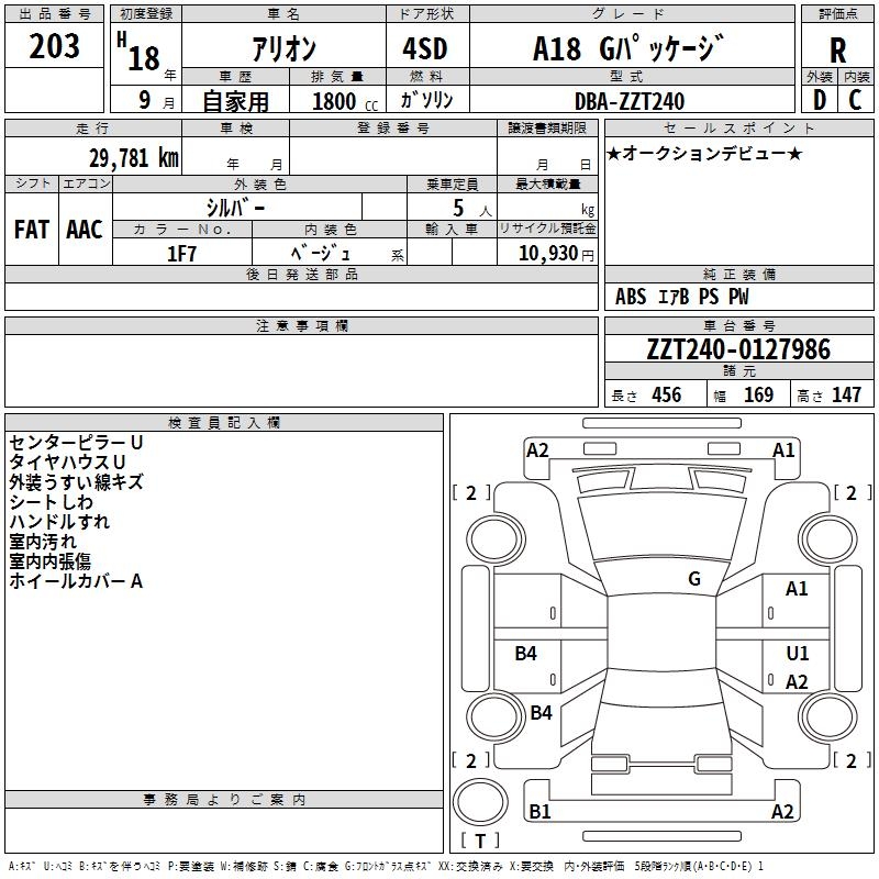 TOYOTA ALLION A18 G PACKAGE - лот 203