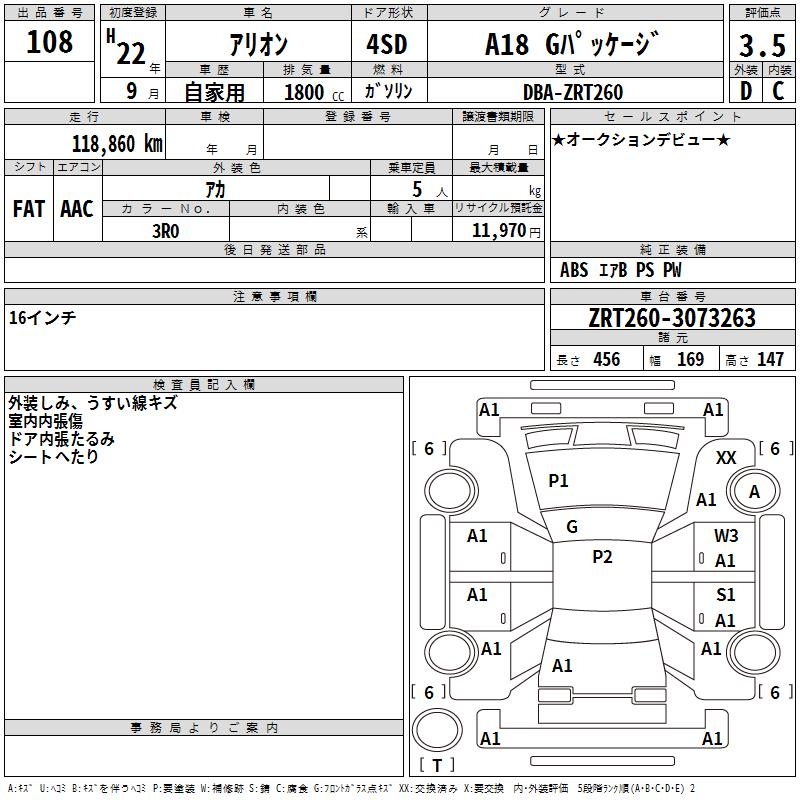 TOYOTA ALLION A18 G PACKAGE - лот 108