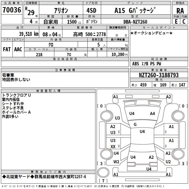 TOYOTA ALLION A15 G PACKAGE - лот 70036