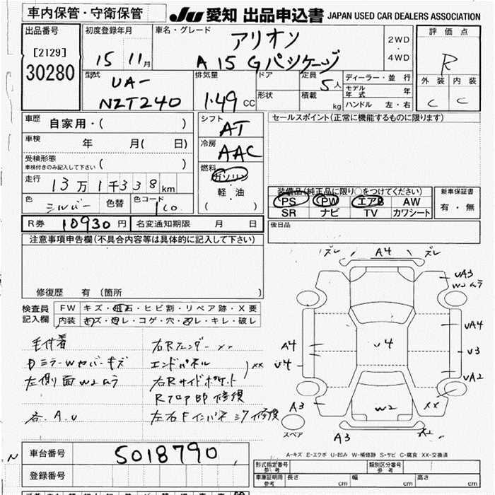 TOYOTA ALLION A15 G PACKAGE - лот 30280