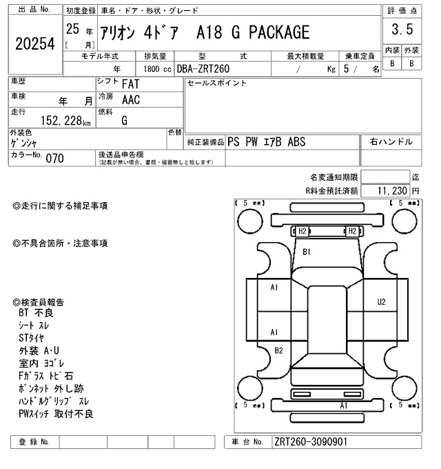 TOYOTA ALLION A18 G PACKAGE - лот 20254