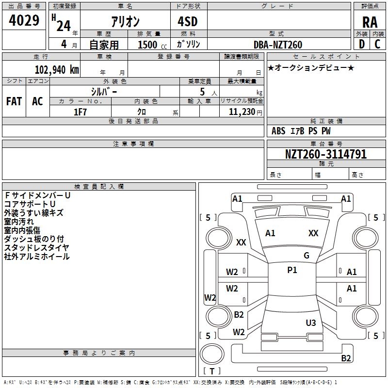 TOYOTA ALLION - лот 4029