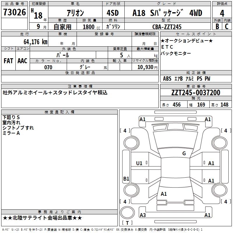 TOYOTA ALLION A18 S PACKAGE 4WD - лот 73026