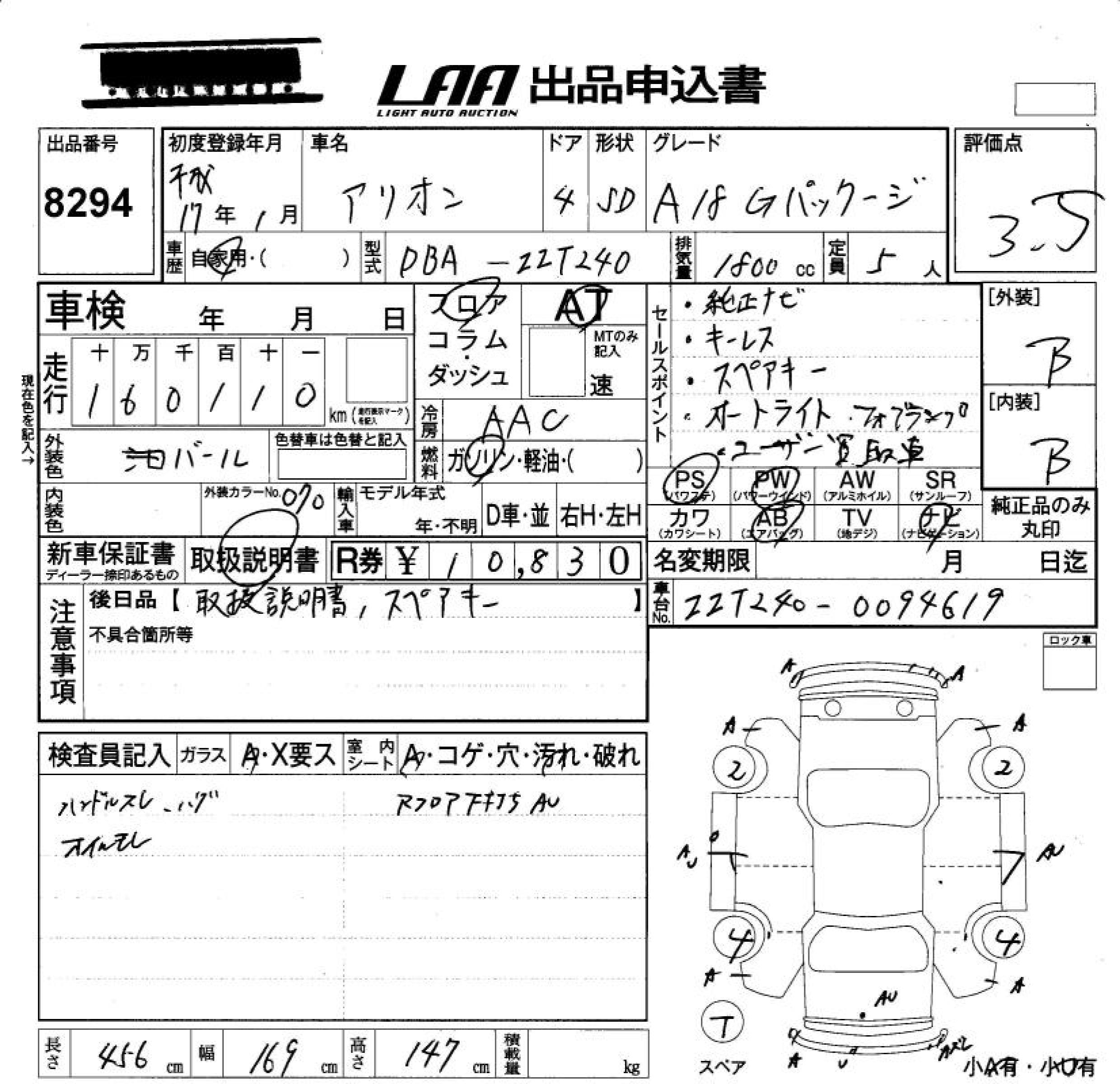 TOYOTA ALLION A18 G PACKAGE - лот 8294