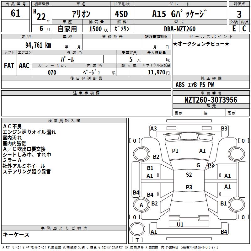 TOYOTA ALLION A15 G PACKAGE - лот 61