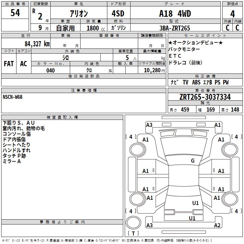 TOYOTA ALLION A18 4WD - лот 54