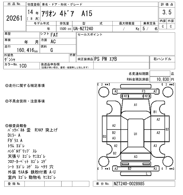 TOYOTA ALLION A15 - лот 20261