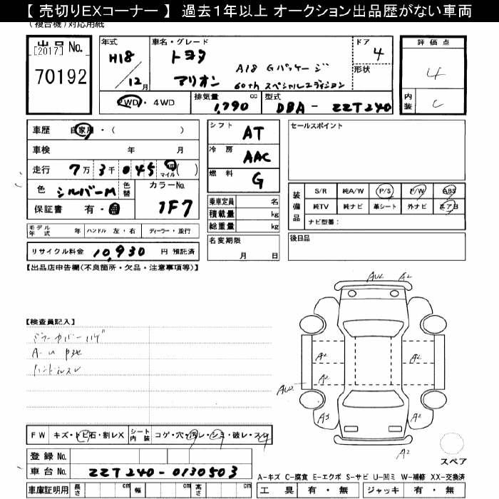 TOYOTA ALLION A18G-PKG 60TH SPECIAL ED - лот 70192
