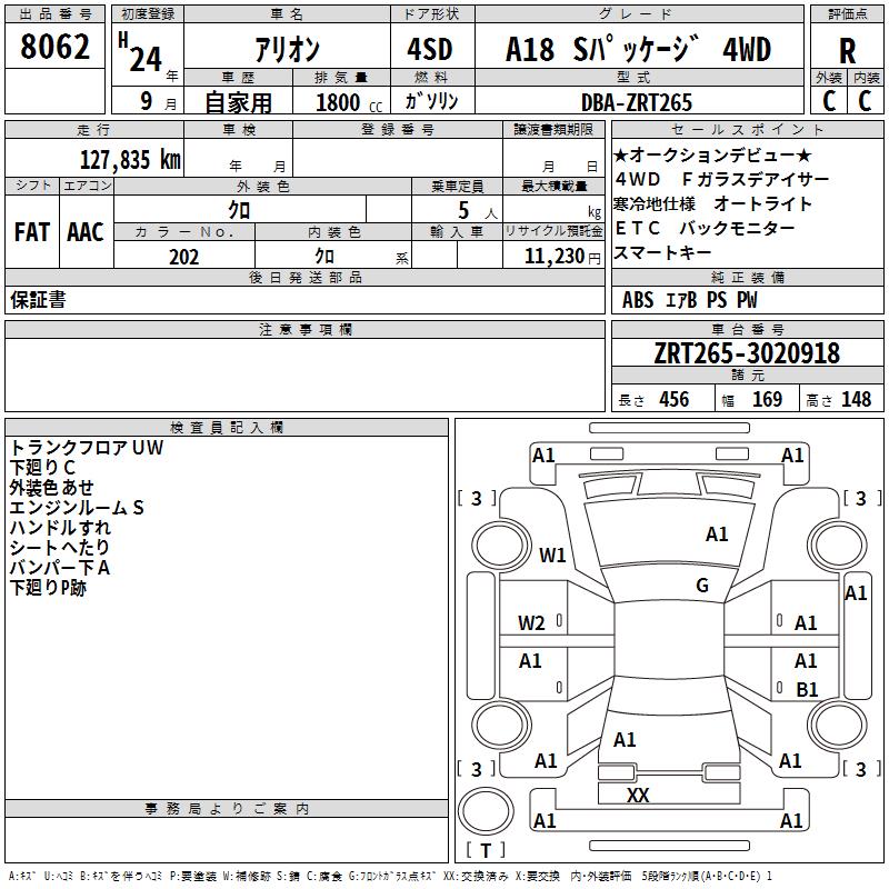 TOYOTA ALLION A18 S PACKAGE 4WD - лот 8062