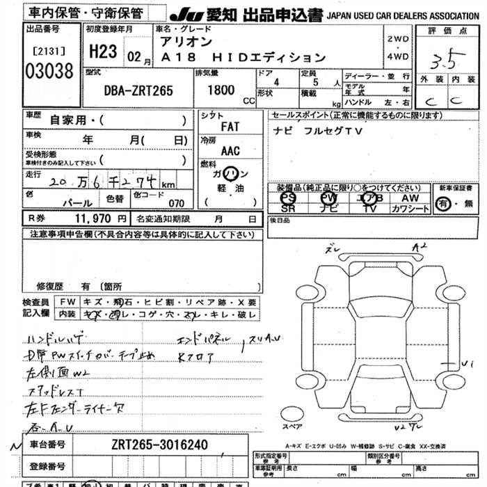 TOYOTA ALLION A18 HID EDITION - лот 3038