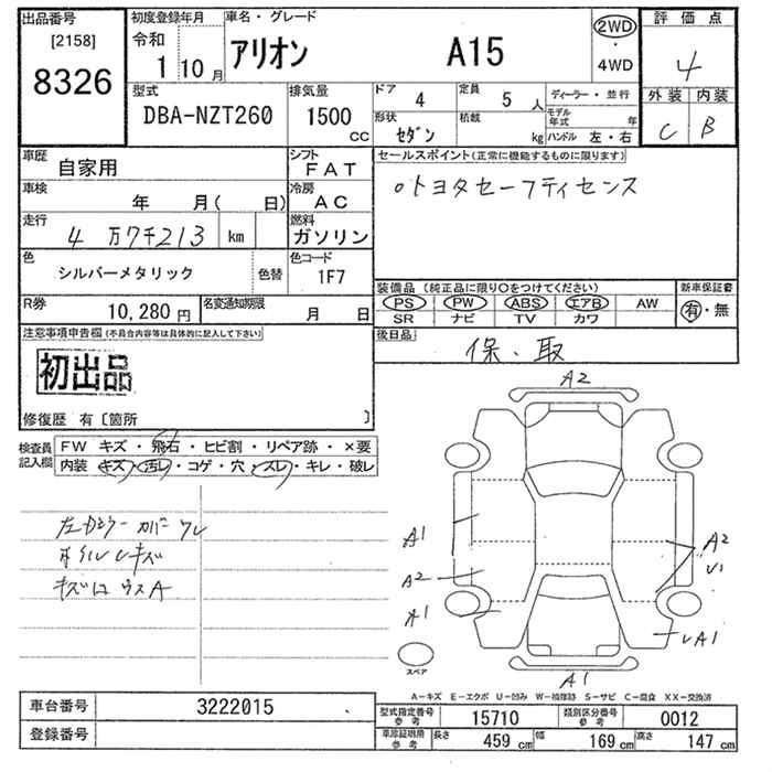 TOYOTA ALLION A15 - лот 8326