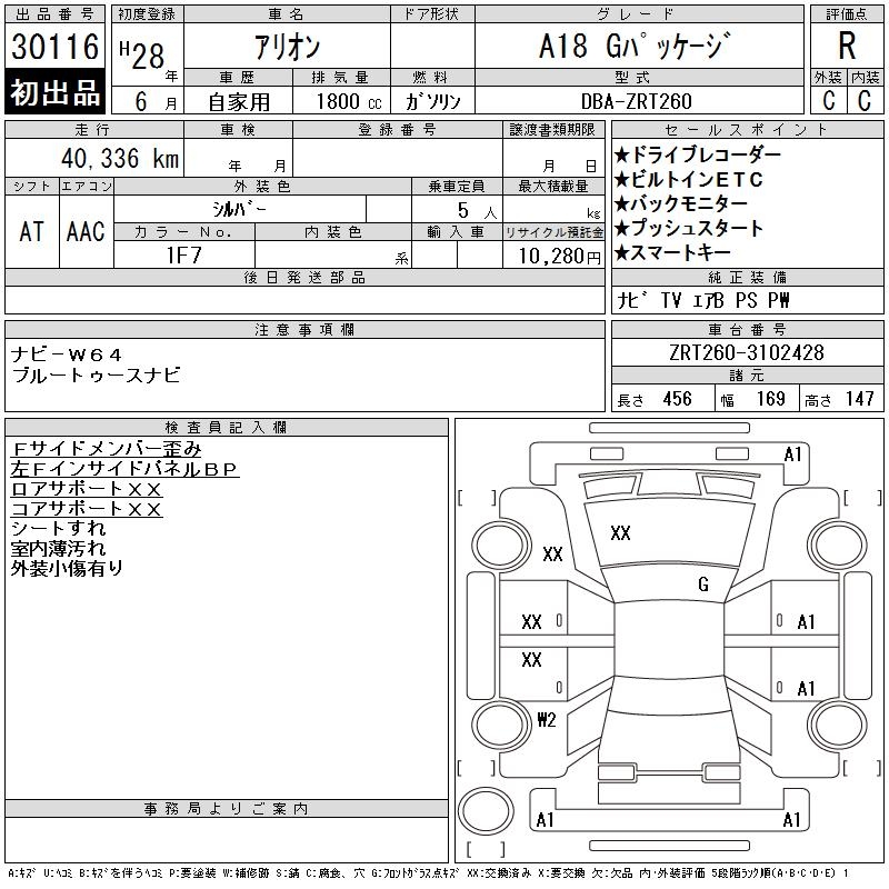 TOYOTA ALLION A18 G PACKAGE - лот 30116