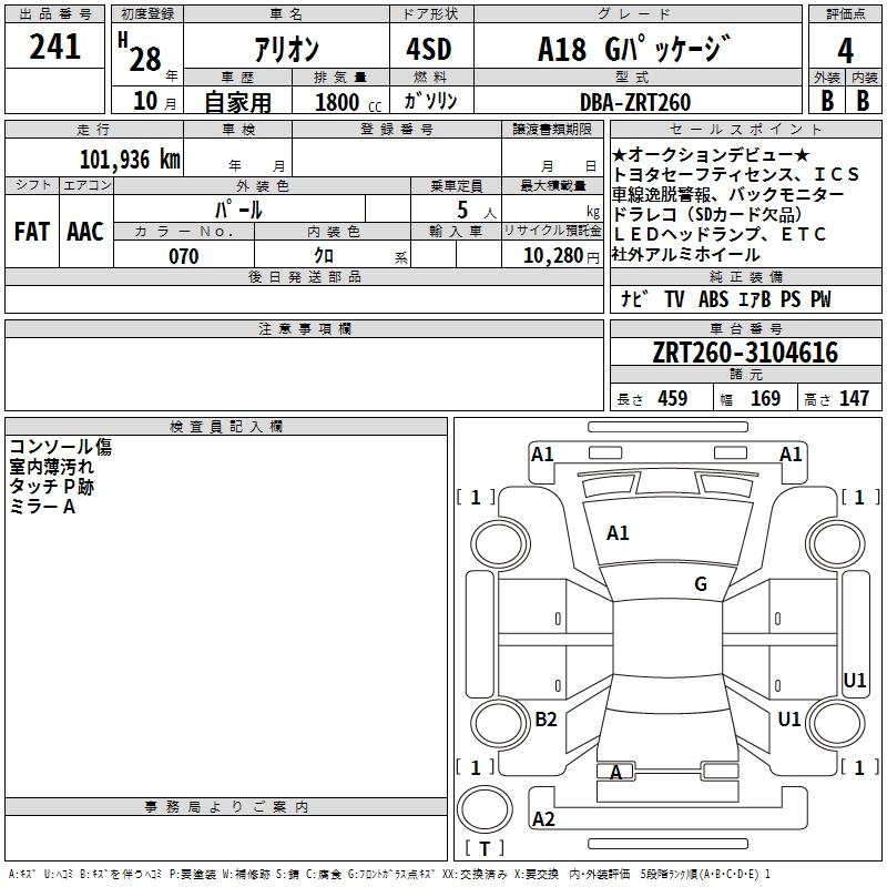 TOYOTA ALLION A18 G PACKAGE - лот 241