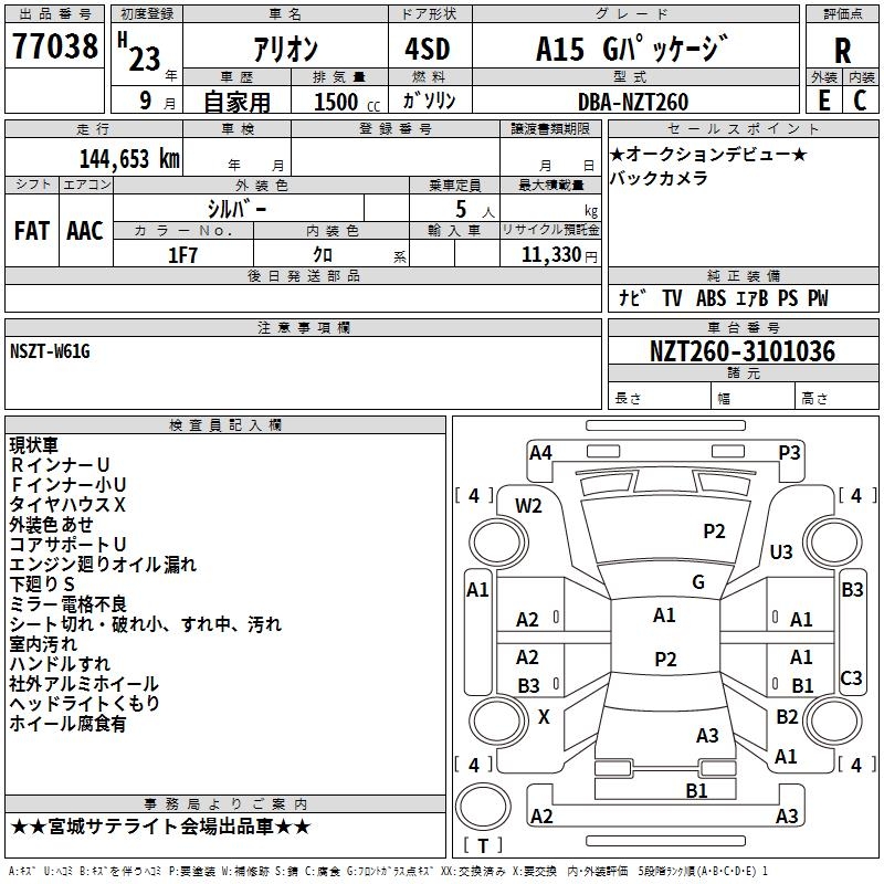 TOYOTA ALLION A15 G PACKAGE - лот 77038