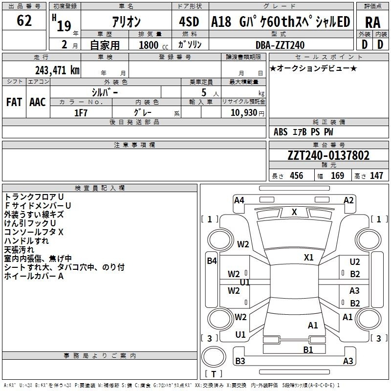 TOYOTA ALLION - лот 62