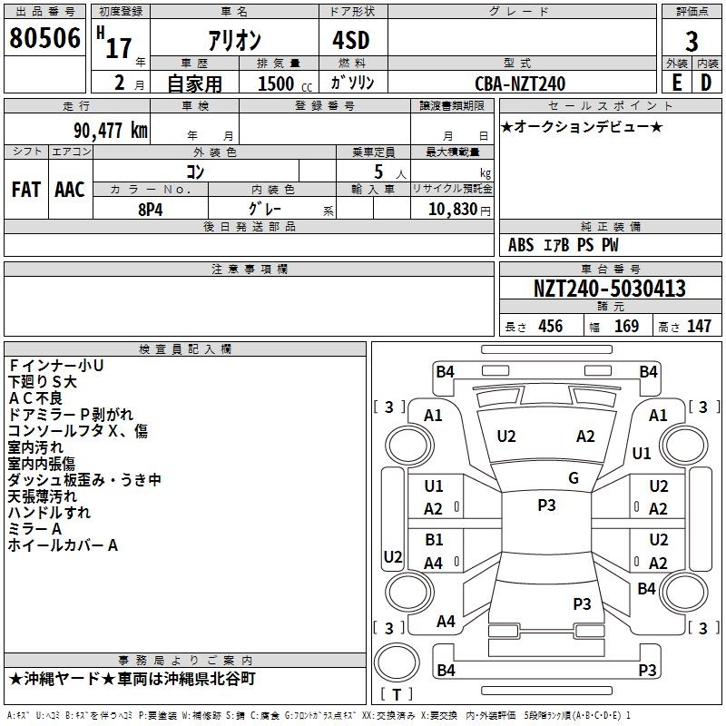 TOYOTA ALLION - лот 80506