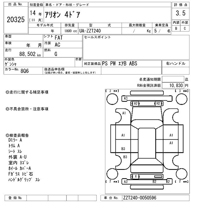 TOYOTA ALLION - лот 20325