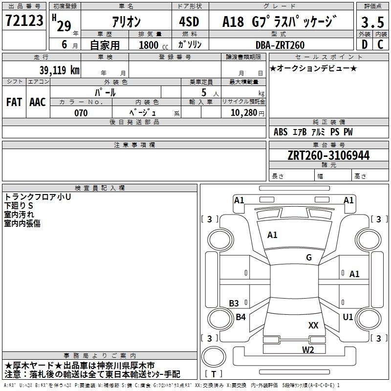 TOYOTA ALLION - лот 72123