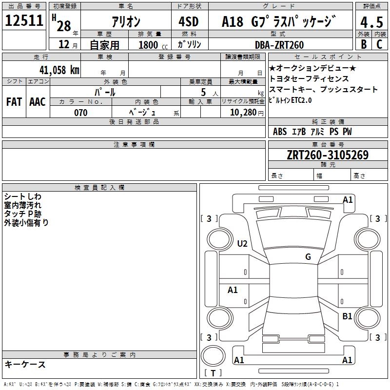 TOYOTA ALLION A18 G PLUS PACKAGE - лот 12511