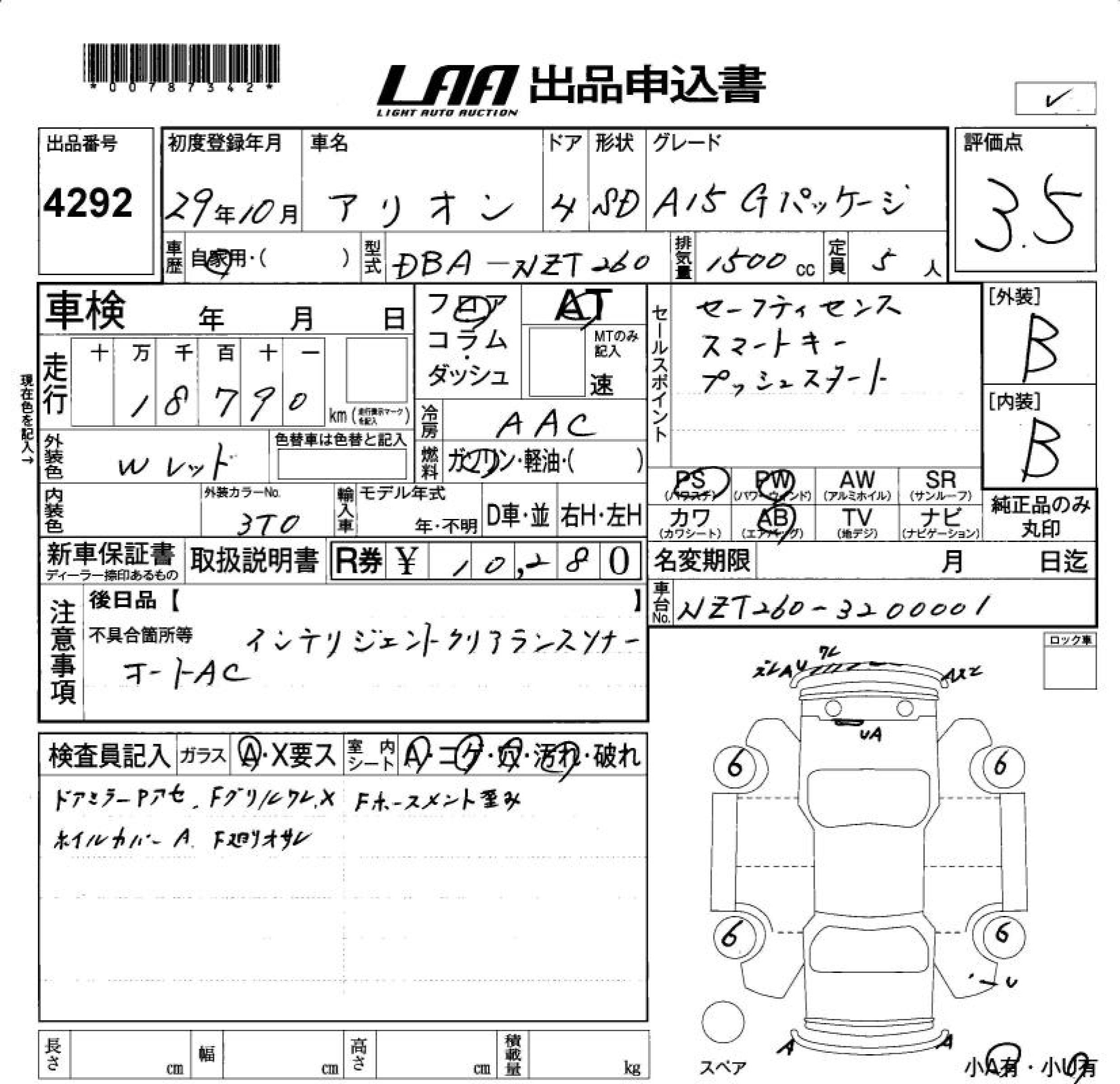 TOYOTA ALLION A15 G PACKAGE - лот 4292